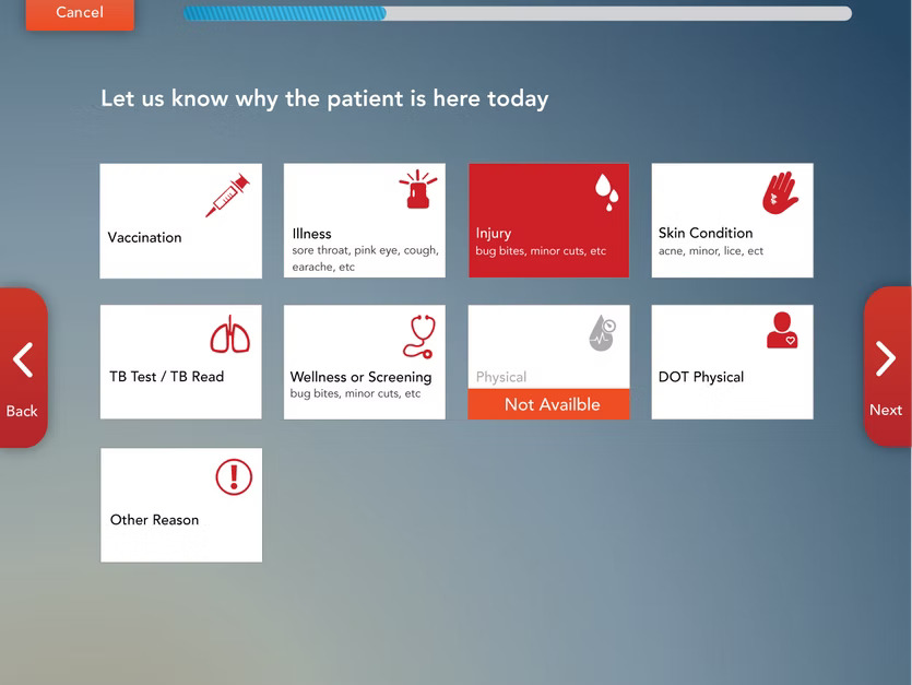 A progress bar was incorporated to inform patients about their advancement through check-in, reducing anxiety and uncertainty.
